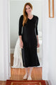 Pamper your skin while you sleep in the Haley Gown, which provides moderate coverage for cooler nights. Side slits, crossover front detail, 3/4 sleeves. Below knee hemline.